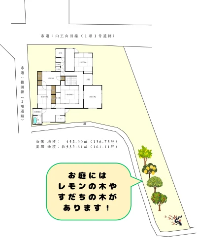現在、敷地内には建物がありますが、更地渡しでのお引き渡し予定です。解体後の土地利用を前提として、計画を進めていただけます。