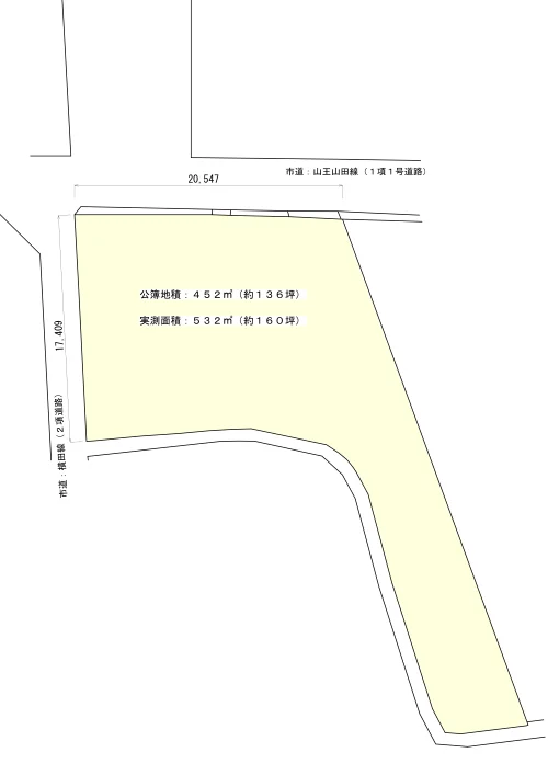土地面積は452.00㎡(公簿)とゆとりがあり、地勢は平坦です。住宅用地として検討しやすく、敷地全体を活かした建物配置や外構計画を考えやすい条件となっています。建築条件はなく、住宅の新築を検討されている方にとって選択肢の幅が広がります。